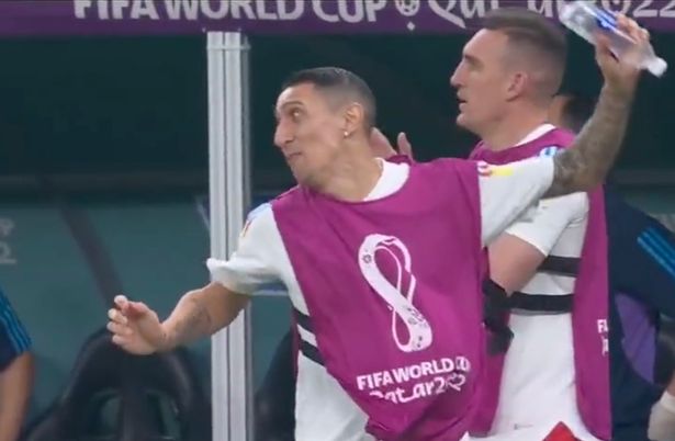 Chứng kiến việc đội nhà nhận 2 bàn thua chóng vánh, tiền vệ Angel Di Maria ở phía bên ngoài sân không thể kìm được sự ức chế. Ống kính máy quay hướng về phía ngôi sao thuộc biên chế Juventus, khi anh ném chai nước thật mạnh xuống đất với một vẻ mặt dường như muốn khóc.